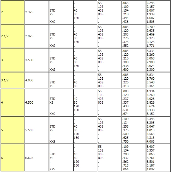 Biểu đồ dữ liệu đường ống dưới đây có thể được sử dụng để tìm đường ống kích thước, đường kính, độ dày của tường, áp lực làm việc và nhiều hơn nữa Biểu đồ này dựa trên ASME / ANSI B 36.10 Ống thép hàn và không rỉ và ống thép không rỉ ASME / ANSI B36.19.