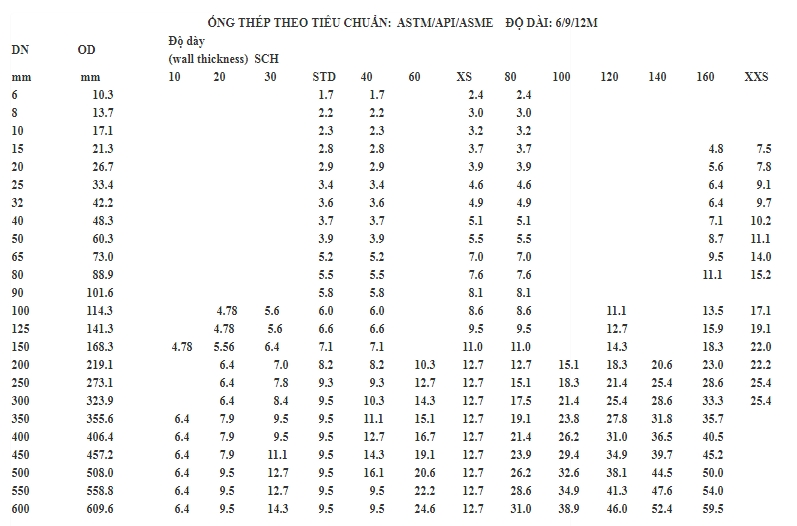 Các ống thép đúc, ống thép hàn, ống thép mạ kẽm dùng cho dẫn dầu, dẫn khí, TIÊU CHUẨN tiêu chuẩn bảng giá , số liệu ASTM A53, ASTM A106, ASTM A179, ASTM A106-Grade B, ASTM A53-Grade B, API-5L, GOST, JIS, DIN, GB/T, API5CT, ANSI, EN,…