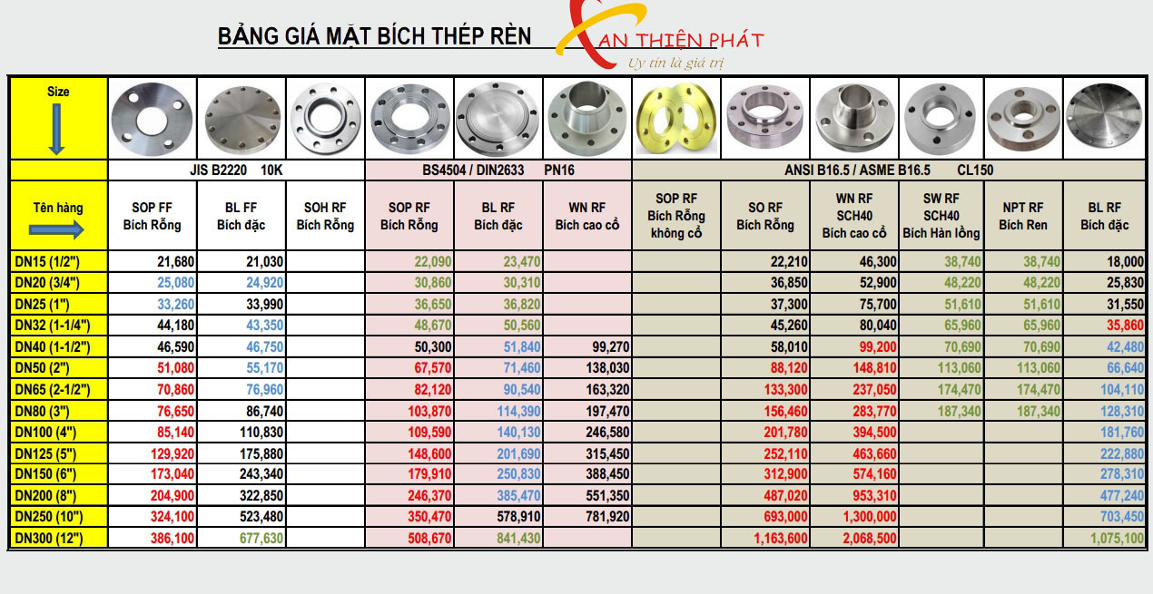 Bảng báo giá mặt bích inox jis ansi bs 316 304 cập nhật
